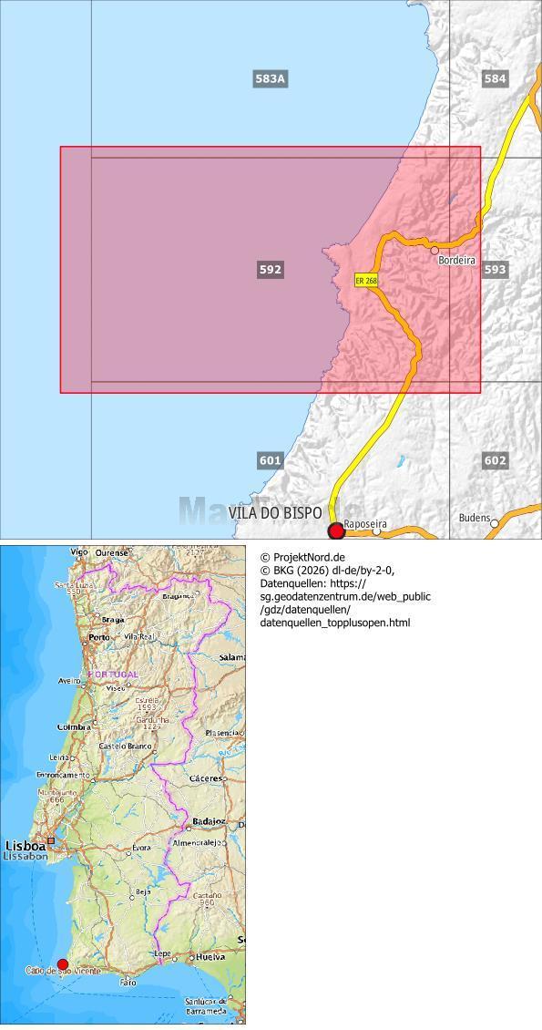 ![]() | 592 Bordeira (Aljezur) Topographische Landkarte Wanderkarte und Fahrradkarte Portugal 1:25.000 592 Mapa topográfico - Mapa de caminhadas - Portugal 1:25.000 ProjektNord |