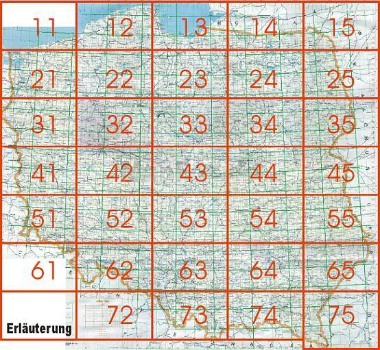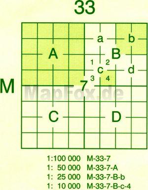 HINWEIS: Die dicken grünen Linien geben die 1:100.000 Blattschnitte wieder.